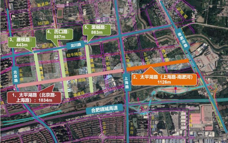 三條道路呈平行之勢,依次排開,與本次建設(shè)的太平湖路交錯(cuò)連通,奠定北京路、龍川路、上海路、繞城高速合圍區(qū)域內(nèi)骨干路網(wǎng)架構(gòu),既可為龍川路、上海路等城市主干道提供合理的交通分流,也可為淝河科創(chuàng)中心、龍川路南生態(tài)宜居區(qū)域提供堅(jiān)實(shí)的配套服務(wù)。